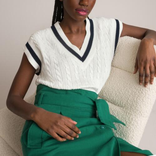 Cable Knit Vest Top in Cotton Mix with V-Neck La Redoute Collections £21.00 -