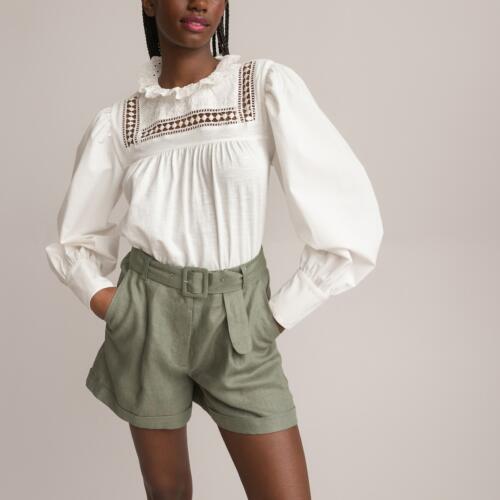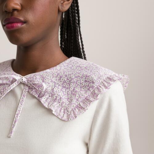 Cotton Victoriana Collar T-Shirt with Long Sleeves La Redoute Collections £25.20 -