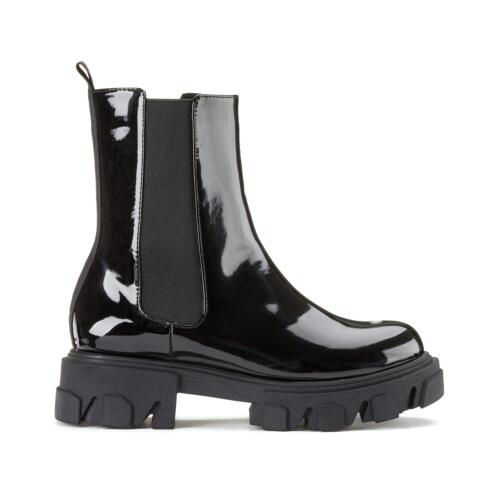 Patent Elasticated Ankle Boots with Notched Sole La Redoute Collections £30.60 -