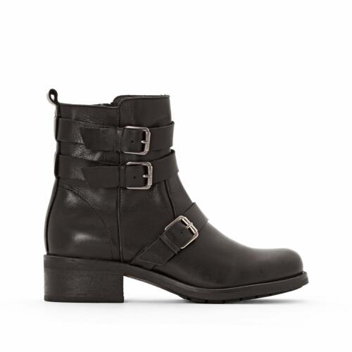 Leather Biker Ankle Boots with Triple Strap La Redoute Collections £85.00 -