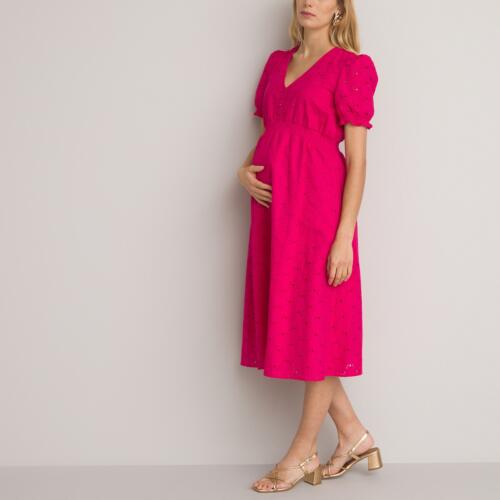 Broderie Anglaise Maternity Dress in Cotton with Puff Sleeves La Redoute Collections £52.00 -
