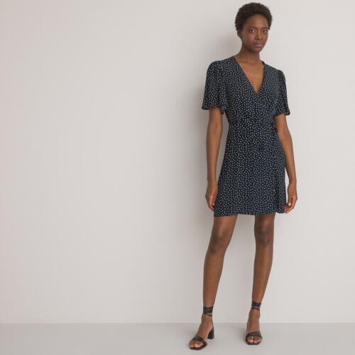 Polka Dot Wrapover Dress with Short Puff Sleeves La Redoute Collections £26.00 -