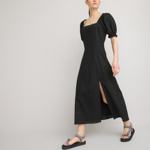 Linen Mix Midi Dress with Ruffles and Puff Sleeves La Redoute Collections £27.00 -