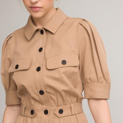 Puff Sleeve Shirt Dress in Cotton Mix with Belt La Redoute Collections £34.00 -