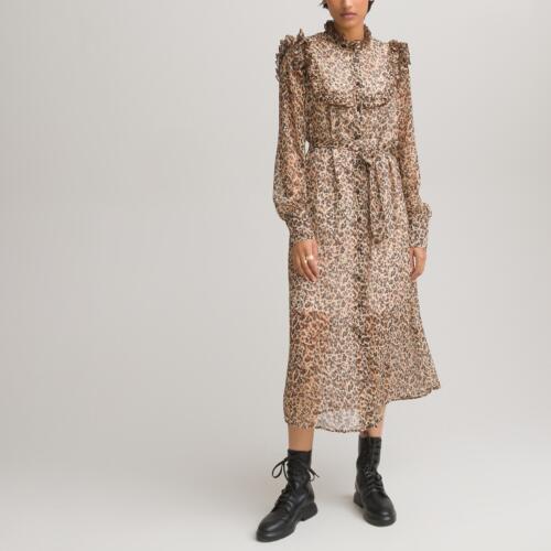 Recycled Floral Shirt Dress with Double Ruffled Hem and Long Sleeves La Redoute Collections -