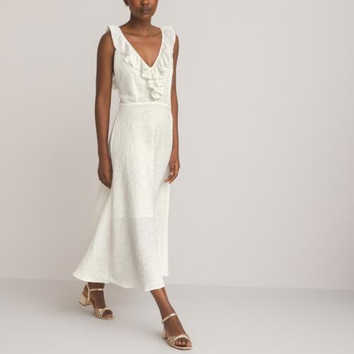 Jacquard Sleeveless Midi Dress with Ruffled Straps La Redoute Collections £37.40 -