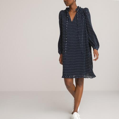 Polka Dot Pleated Dress with High Ruffled Neck and Long Puff Sleeves La Redoute Collections £30.60 -