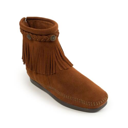 Suede Fringed Ankle Boots with Ankle Plait Minnetonka -