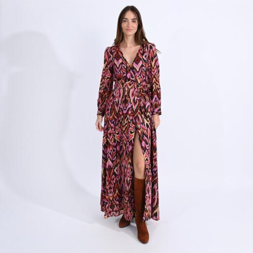 Printed Maxi Shift Dress in Cotton with Long Sleeves Molly Bracken £57.60 -