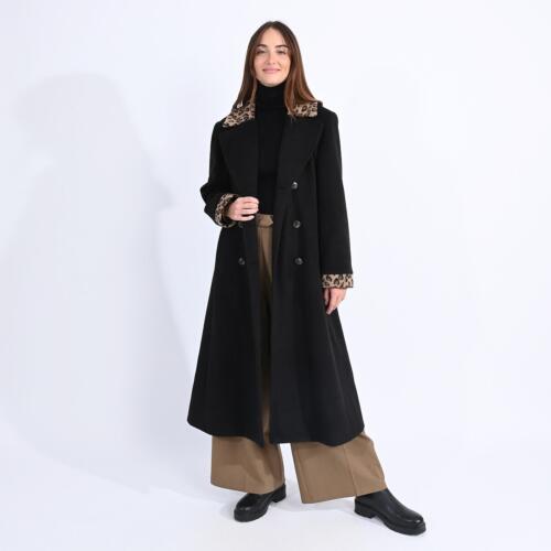 Long Buttoned Coat with Leopard Print Details Molly Bracken £116.25 -
