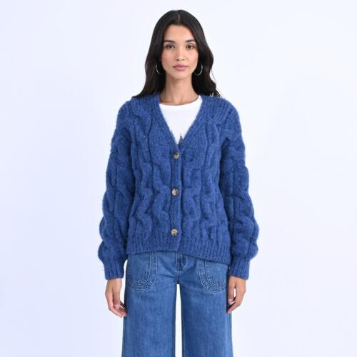 Buttoned Chunky Knit Cardigan with V-Neck Molly Bracken £57.60 -