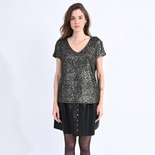Animal Print T-Shirt with V-Neck and Short Sleeves Molly Bracken £27.00 -