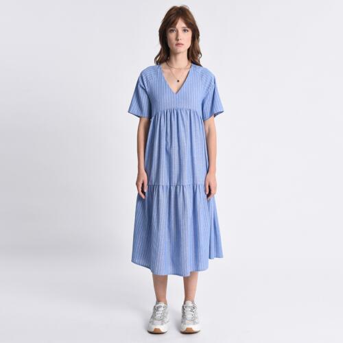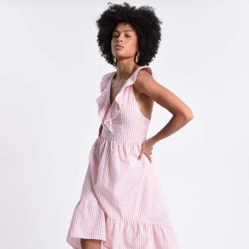Striped Asymmetric Dress in Cotton Mix with Open Tie Back Molly Bracken £45.00 -