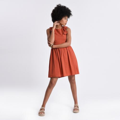Cotton Mix Mini Dress with Ruffled Shoulders and Lace-Up Back Molly Bracken £33.60 -