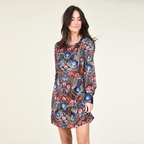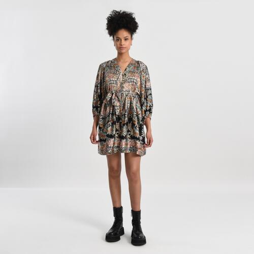 Printed Mini Dress with 3/4 Length Sleeves and Tie-Waist Molly Bracken £42.00 -