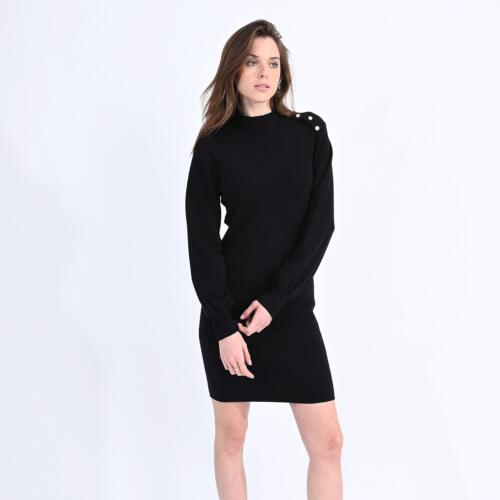 Mock Neck Bodycon Dress with Button Trim Molly Bracken -