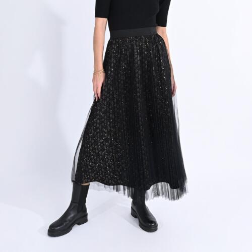 Midi Skirt in Metallic Graphic Print Tulle Molly Bracken £44.20 -
