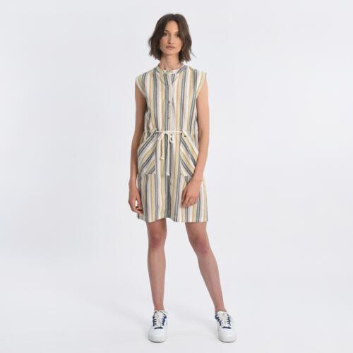 Striped Mini Dress with Mandarin Collar and Tie-Waist Molly Bracken £39.75 -