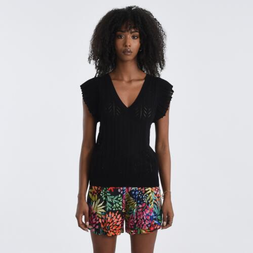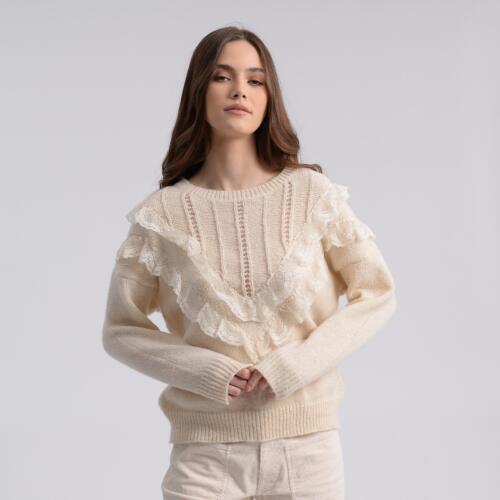 Pointelle Knit Jumper with Short Ruffled Sleeves Molly Bracken £42.00 -