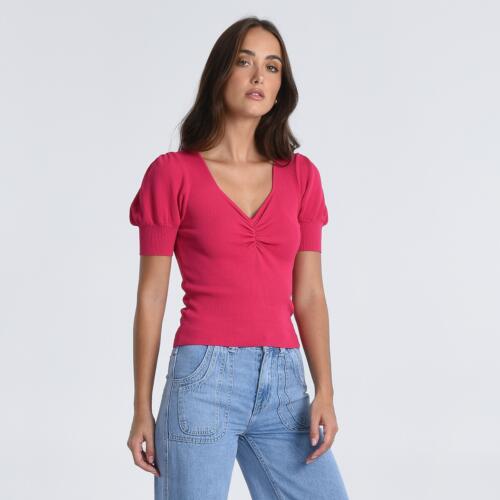 V-Neck Jumper with Short Puff Sleeves Molly Bracken £28.00 -