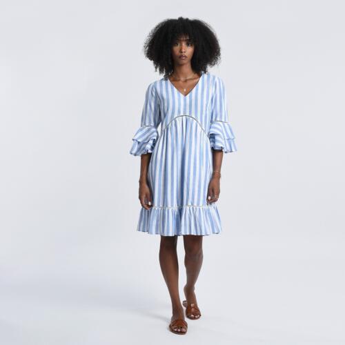 Striped Cotton Mix Dress with Ruffled Sleeves Molly Bracken £45.60 -