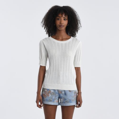 Pointelle Knit Jumper with Short Puff Sleeves Molly Bracken £50.00 -