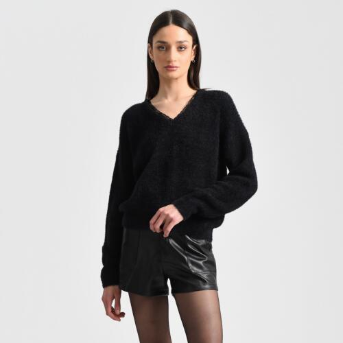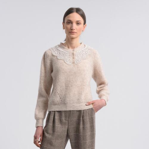 Fluffy Jumper with Lace-Trimmed V-Neck Molly Bracken £31.20 -