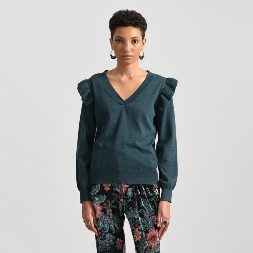 V-Neck Jumper with Ruffled Shoulders Molly Bracken £30.80 -