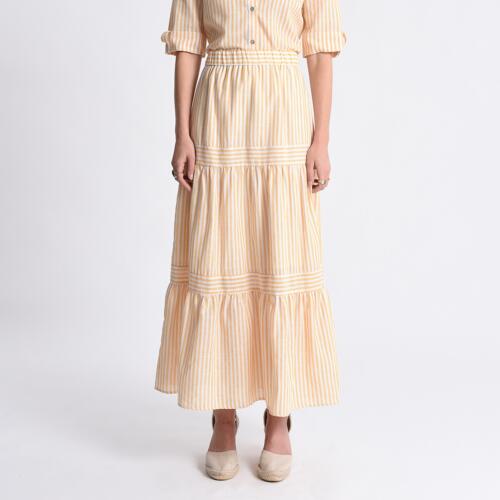 Striped Tiered Maxi Skirt in Cotton Mix Molly Bracken £30.80 -