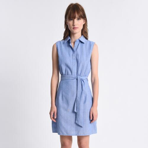Printed Sleeveless Shirt Dress in Cotton Mix with Tie-Waist Molly Bracken £30.80 -