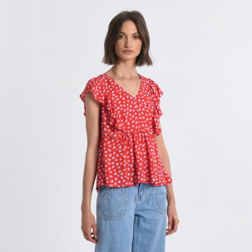 Heart Print Blouse with Short Ruffled Sleeves Molly Bracken £33.60 -