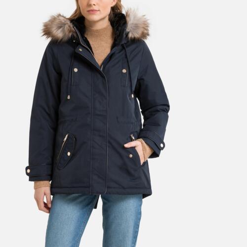 Long Winter Padded Jacket with Faux Fur Trim Hood Naf Naf £100.50 -