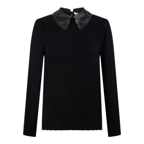 Fine Knit Jumper with Laser Cut Faux Leather Collar Naf Naf £40.00 -
