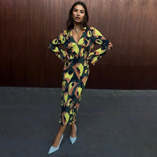 Lime and Khaki Plisse Celeste Dress Never Fully Dressed £99.00 -