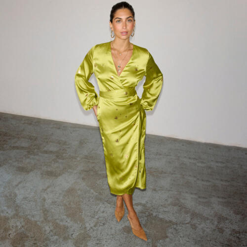 Lime Hearts Vienna Wrap Dress in Khaki, Size 8 by Never Fully Dressed Never Fully Dressed £129.00 -