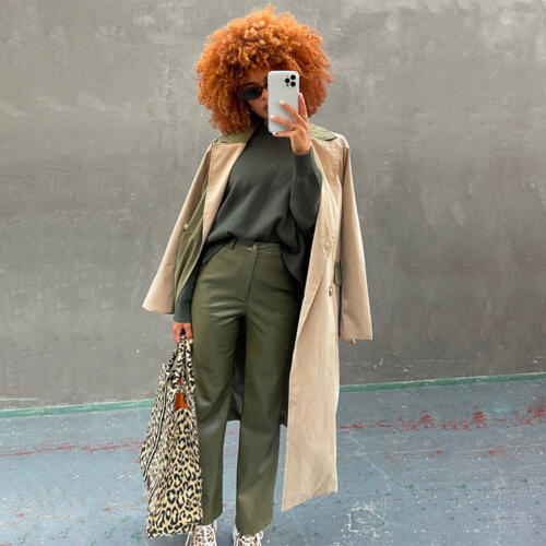 Khaki Vegan Leather Trouser, Size 8 by Never Fully Dressed Never Fully Dressed £99.00 -