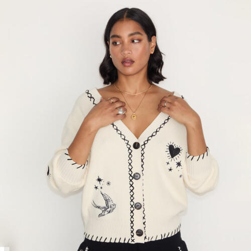 Cream Mystical Tattoo Cardigan, Size Medium, Polyester/Viscose by Never Fully Dressed Never Fully Dressed £99.00 -
