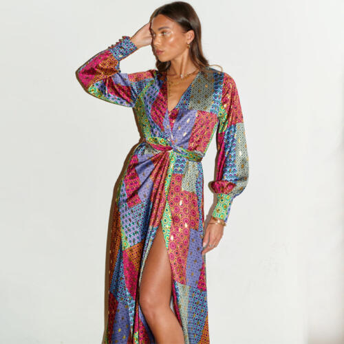 NFD Outlet Geo Patchwork Long Sleeve Wrap Dress Nfd Outlet £39.00 -