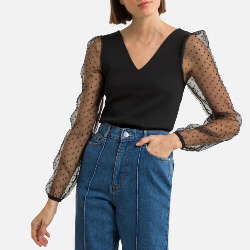 Fine Knit Jumper with V-Neck and Balloon Sleeves Only £22.40 -