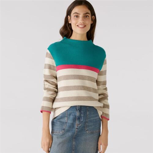 High Neck Cable Knit Stripe Jumper Oui £209.00 -