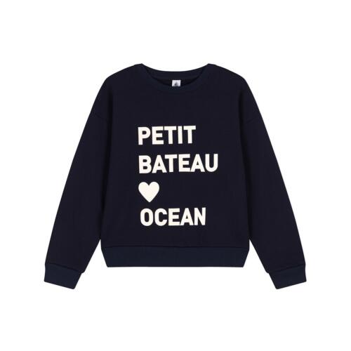 Logo Print Sweatshirt in Organic Cotton and Brushed Fleece Petit Bateau £69.30 -