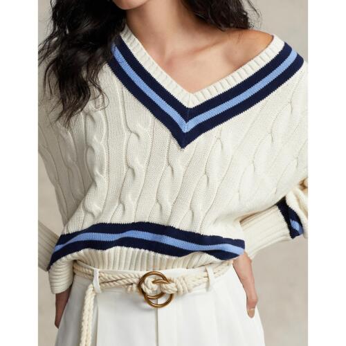 Cotton Short Cricket Jumper in Cable Knit with V-Neck Polo Ralph Lauren £265.00 -