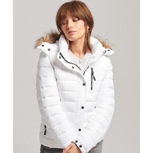 Short Hooded Padded Jacket with Faux Fur Trim and Zip Fastening Superdry £90.25