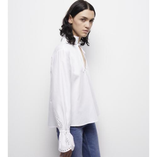 Cotton Pussy Bow Blouse with Broderie Anglaise and Long Ruffle Sleeves The Kooples £127.50 -