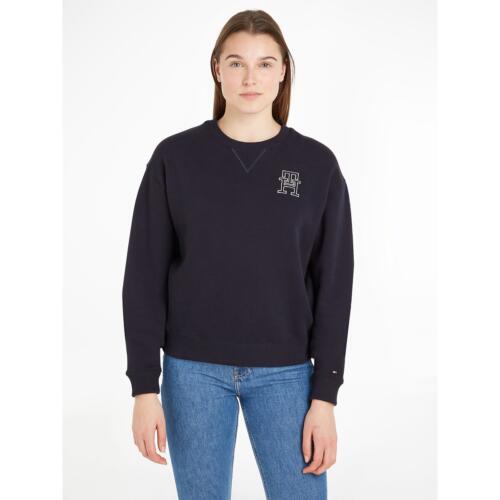 Cotton Mix Sweatshirt with Embroidered Logo and Crew Neck Tommy Hilfiger £84.15