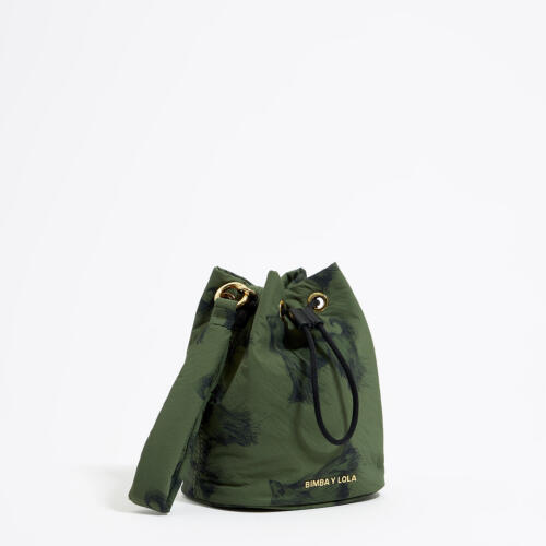 BIMBA Y LOLA Khaki Pencil Greyhound print nylon bucket bag Bimba Y Lola £90.00 -