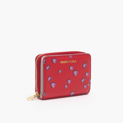 Red leather rectangular coin purse with Small Hearts print Bimba Y Lola £70.00 -