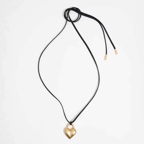 BIMBA Y LOLA Matte gold heart necklace with black cord Bimba Y Lola £65.00 -
