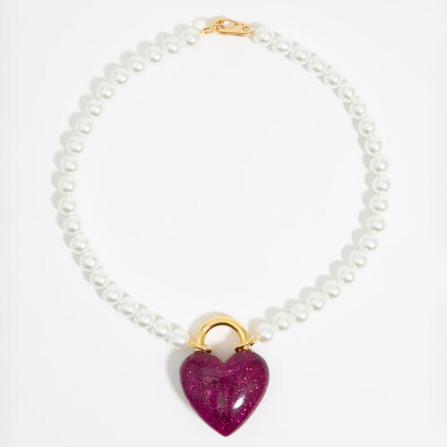 BIMBA Y LOLA Pearl necklace with fuchsia glitter heart Bimba Y Lola £85.00 -
