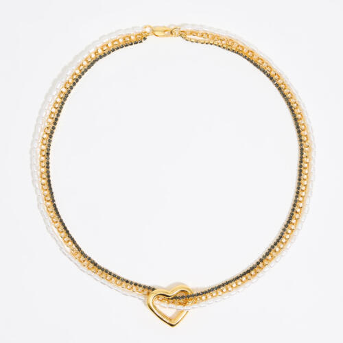 BIMBA Y LOLA Pearl multi-chain heart necklace with gold crystals Bimba Y Lola £65.00 -